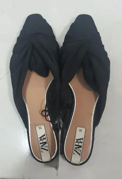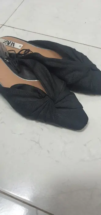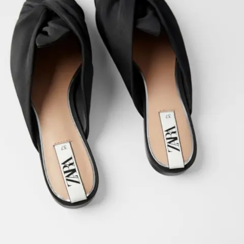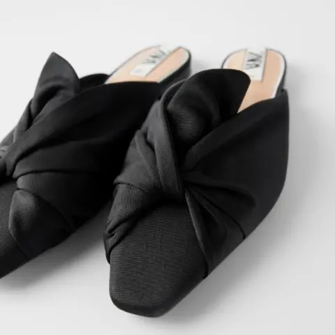 Mules negros de Zara. Mules de piso color negro, la tela es suave y como satinada. Tienen nudo al frente. Son talla 36, nuevos y con etiqueta