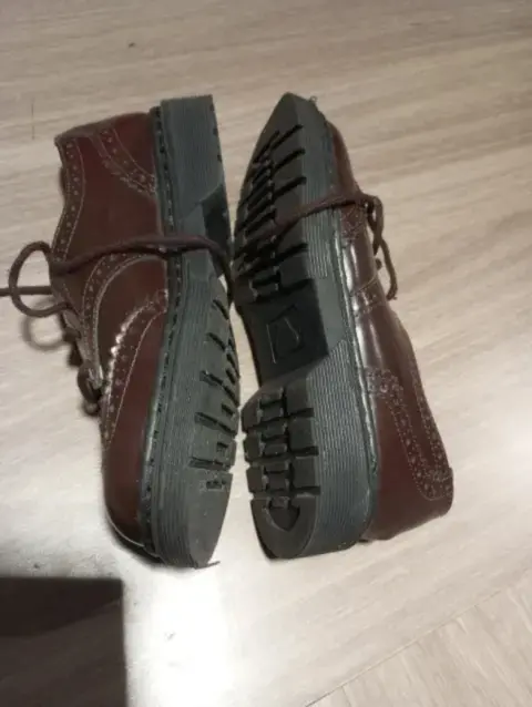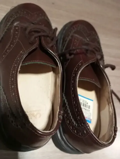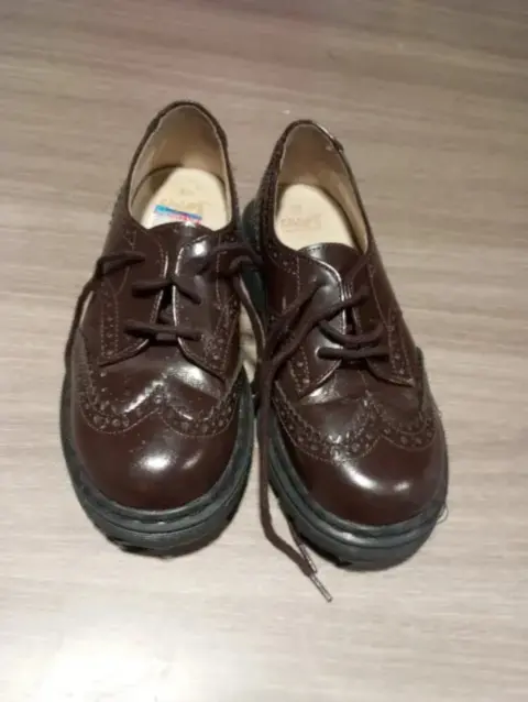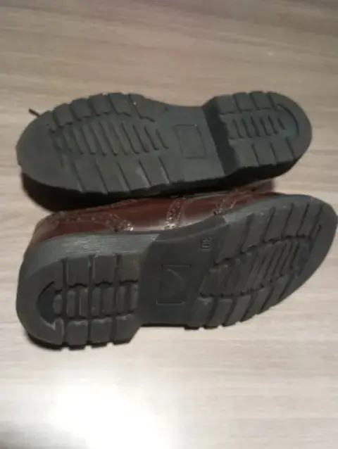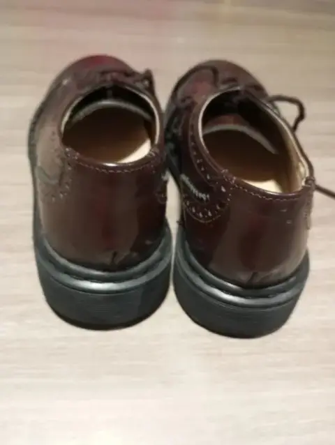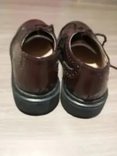 Zapato bostoniano / Oxford tipo charol de color café, con agujetas, de manufactura española, por lo que dice talla 30, equivalente a talla 18