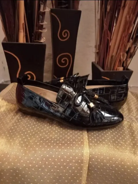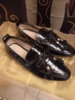 Zapatos tipo mocasín de charol con diseño, nuevos, cómodos y lindos. Corte sintético #23.5