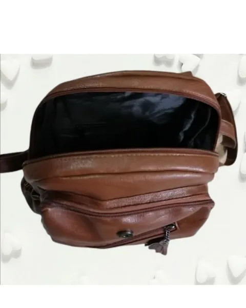 Back pack café. Back pack camel mediana está muy completa tiene muchos compartimentos, los cierres funcionan al 100 también tiene bolsitas a los costados, se ajustan los tirante, no rota, no pelada sintéticaMedidas 25cm largo, 25cm ancho, 13cm asiento