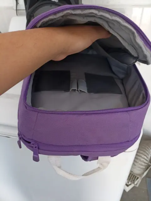 Back pack HP. Puede ser para útiles y laptopEl color es hermosa En realidad se usó más para viajes largos que llevarla de diario al trabajo o universidad, tiene manchas que con paño húmedo se van, no están impregnadas.💖💞Demasiado cómoda, la necesito sacar porque mi lap ya es más grande y en realidad está guardada.