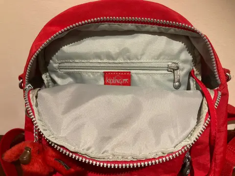 Back pack pequeña Kippling. Mochila pequeña casual, color rojo, con llavero de gorila original