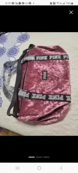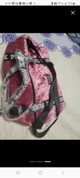 Mochila marca PINK muy Femenina lista para el Gim o esas escapadas de fin de semana. Es color rosa y la tela es como de terciopelo, es amplia y muy bonita, excelente estado, lista para usarse! Doble correa, por si quieres llevarla al hombro. Sus medidas:Ancho .50Alto .25Estoy a sus órdenes.