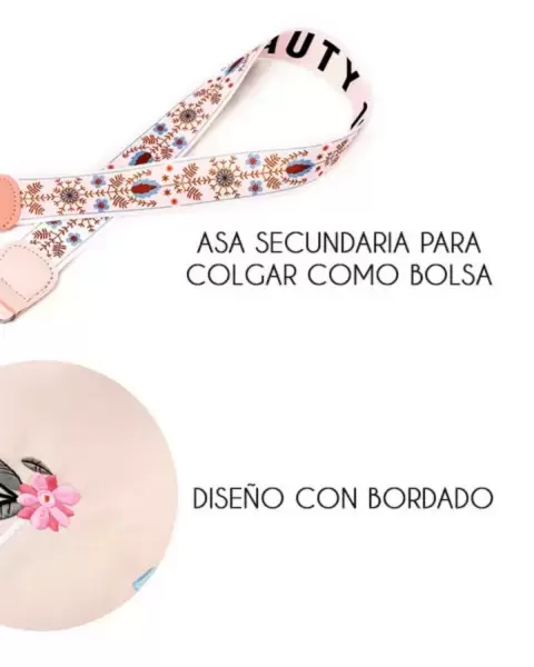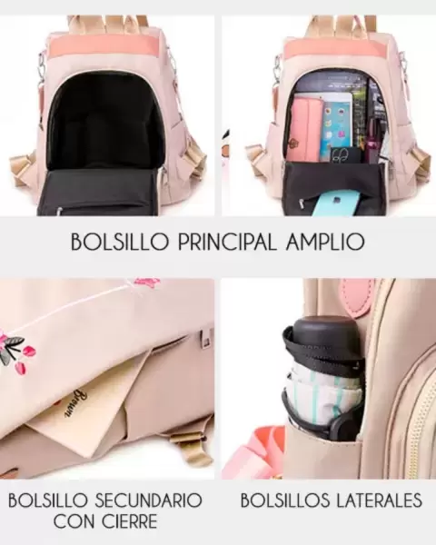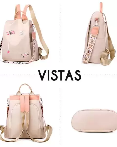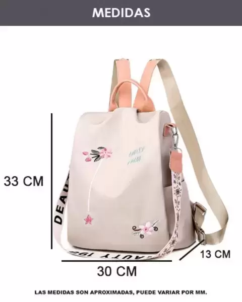 Mochila beige nueva, bordada, super bonita, cómoda, antirobo