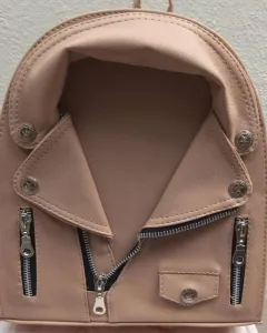 Mochila en forma de chamarrita, con cierre, color beige. Cuenta con cintas de ajuste.