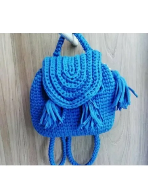 Mochila de crochet. Mochila en Crochet Brasileño color Azul con asas. Producto artesanal hecho por especialistas en Brasil. Foto con tejido en seda y cierre. Producto importado de brasil Medidas: Largo 35cm x Ancho 25cmUsada 6 veces, sin detalles