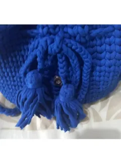 Mochila en Crochet Brasileño color Azul con asas. Producto artesanal hecho por especialistas en Brasil. Foto con tejido en seda y cierre. Producto importado de brasil Medidas: Largo 35cm x Ancho 25cmUsada 6 veces, sin detalles