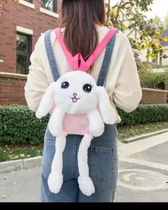 Hermosa mochila kawaii infantil de peluche com orejas y patas con movimiento, se le aprietan las patas y para las orejas, en color Rosa Pastel🐰🥰Mide 36 cm. de ancho X 32 cm de alto ( sin contar patitas ni orejas).NUEVO CON ETIQUETA❗ PRECIO FIJO❗Ojo!! Grabo antes de enviar, corroborando su estado👁️👁️