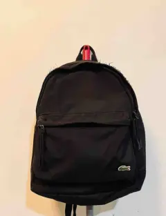 Mochila lacoste negra. Descripción:Mochila Lacoste, color negraPorta laptopUna bolsa frontal, dos mini bolsas interioresUn poco desgastada de los costados superiores (fotos en la publicación)Cierres en perfecto estado