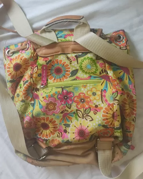 Mochila Lily bloom. Mochila lily bloom medidas de 12x12x5, tiene dos detalles, un arreglo del seguro y el otro es el desgaste del material de abajo, ambos los muestro en las fotos