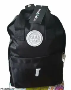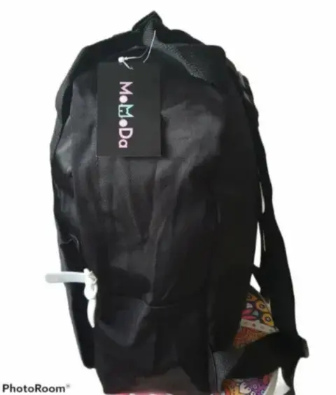 ▪️Mochila sencilla en color negra, cuenta con una bolsa en la parte frontal.▪️También se puede usar como pañalera.▪️Medidas aproximas 37 centimetros de alto por 26 centímetros de ancho.▪️Material tipo loneta resistente.
