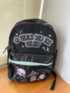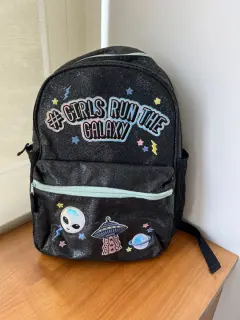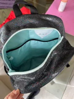 creíble mochila de la marca Childrens place Color negro como con diamantina Solo se uso una vez Tiene bolsa por fuera con cierre y por dentro con resorte