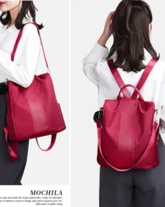 Se puede usar como mochila, bolso de hombro, bolso de manoDimensiones: longitud 31cm, ancho 14cm, Altura 30 cmCapacidad: 8LPeso: 0.42kgCuenta con varios compatimientos en el interiorDiseño antirroboResistente al agua