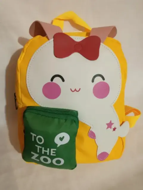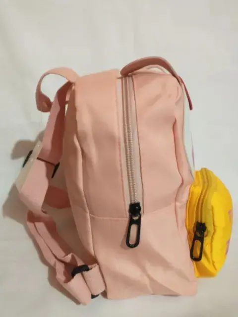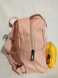 Mochila de conejito color rosa claro con amarillo,con dos compartimientos, medidas de 25cm por 15cm.