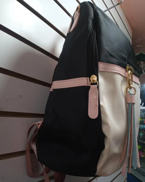 Mochila rosa y negro. Mochila, con varios cierres dos compartimentos,la puedes ocupar como mochila o como bolsa dobleCierres reforzados