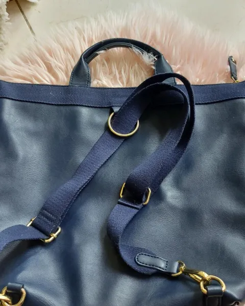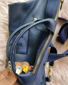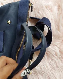 Hermosa backpack de color azul con estrellas metálicas doradas e iniciales de la marca, esta muy padre único detalle es el desgastado de la asas de arriba que no afecta su uso y no es tan perceptible