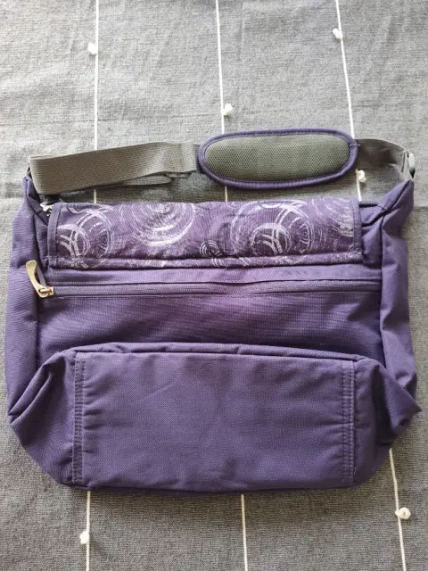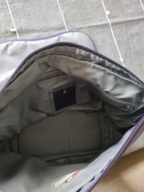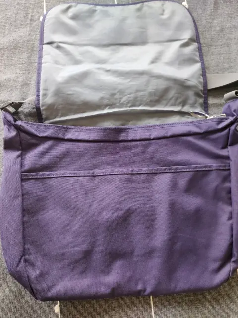 Mochila crossbody marca Xtrem, color morado, muy amplia, cabe una lap top tiene 2 cierres y un compartimento