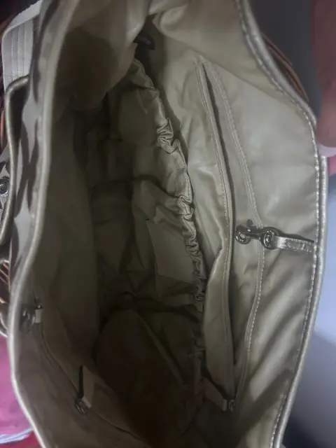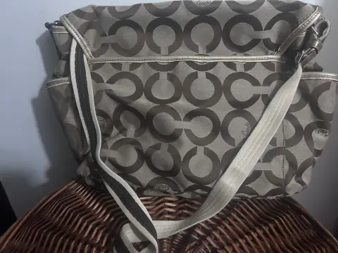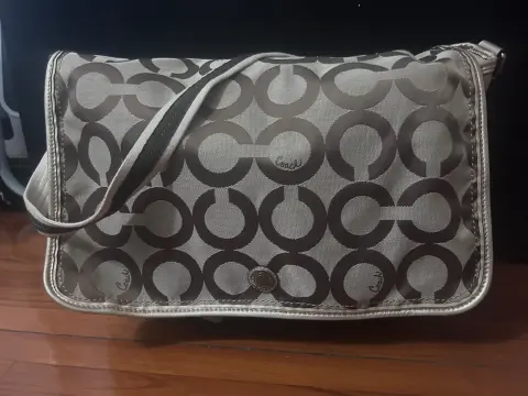 Pañalera original. Está muy amplia y le cabe todo porque trae además muchas bolsitas. No trae cambiador. Está en perfectas condiciones, no rota ni raspada ni desgaste. Se usó muy poco. Original. El material es tela y la cinta para colgarse en el hombro o ponerse en la carriola queda muy bien.