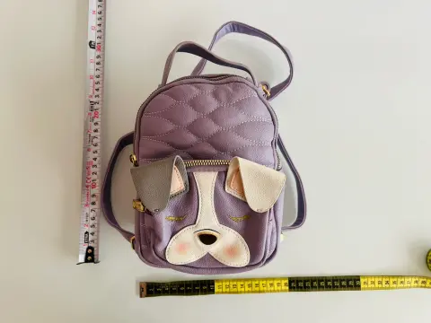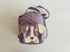 Adorable mochila BETSEY de piel sintética Presenta un perro con orejas hacia abajo, El interior tiene un forro exclusivo de BETSEY Bolsa pequeña en la parte delantera Cierre de cremallera y correas ajustables. Pieza única. Que no te la ganen!!