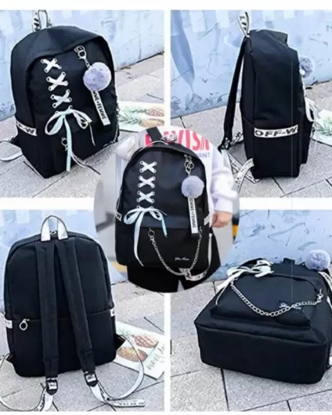 Set de mochila y 4 bolsos. Padrisimo set de mochila, crossbody, cartuchera, monedero, muñequera. material resistente a la decoloracion por el sol. la mochila tiene orificio para auriculares.Tamaño de la mochila: 30x13x41 cm