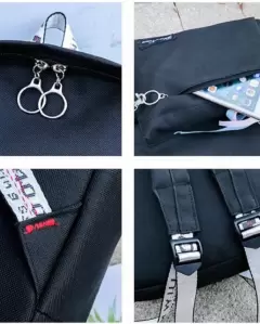 Padrisimo set de mochila, crossbody, cartuchera, monedero, muñequera. material resistente a la decoloracion por el sol. la mochila tiene orificio para auriculares.Tamaño de la mochila: 30x13x41 cm