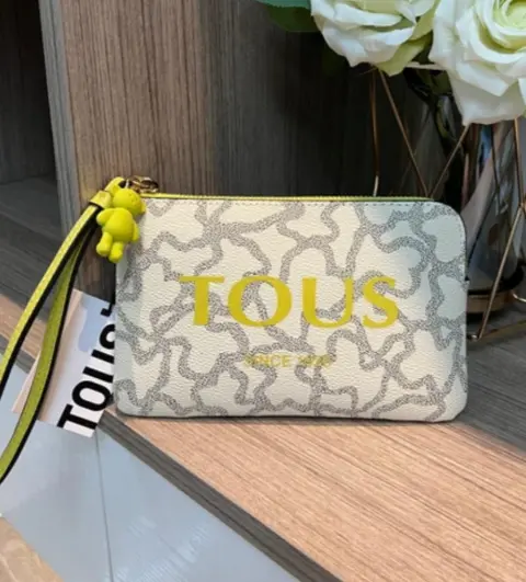 Linda cartera, bolso , monedero de cierre de osoColor beige con amarillo neon Es hermosa