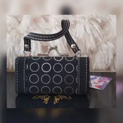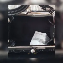 Mini Monedero estilo Baguette Vintage. Mini Monedero en fake fur acabado ante estilo Baguette Vintage color NEGRO ÉBANO, estampado tono SILVER efecto desgaste, asa p/muñeca, herrajes tono PLATA BRILLANTE, cierre mediante cerrojo y forro interior. Dimensiones cms: 8.5 largo, 6 alto, 4.5 profundidad. 100% poliuretano, forro 100% nylon. P/limpieza en casa.***COLECCIÓN ESPUMA***