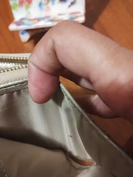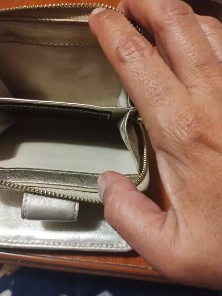 Hermosa cartera ,color dorado ,tamaño monedero ,ideal para cualquier tipo de bolsa ,con espacio para tarjetas de crédito y billetes