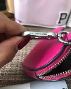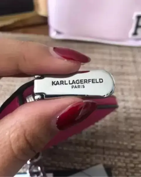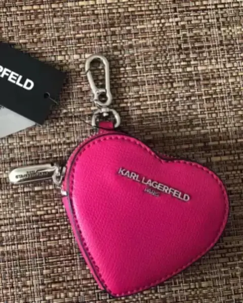 Monedero marca Karl Lagerfeld Paris, en color Fucsia, con holder para colgarse en el bolso o mochila