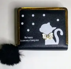 Monedero con adorno de pompon con compartimentos para tarjetas billetes y monedas artículo nuevo