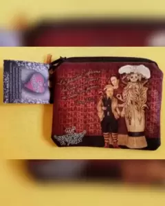 Monedero Mini Ecológico Frida Hahlo-Diego. Monedero ecológico confeccionado en tela de algodón tono crudo con estampado de Frida Kahlo, Diego Rivera y Catrina, y color café y bronce con leyenda: \La felicidad suprema del vivir es el amor en todas sus formas.\ - Diego Rivera, en anverso y reverso. Exterior: 100% algodón. Dimensiones: 9.5 cms largo, 8.5 cms alto. Para lavado en casa.