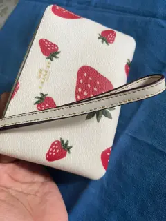 Muñequera de fresas en blanco. Nueva de temporada, es pequeña, no cabe un celular, muy practica para tus monedas, billetes y tarjetas. Sin ningún detalle. Se envía en caja o sobre reutilizable.