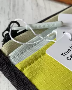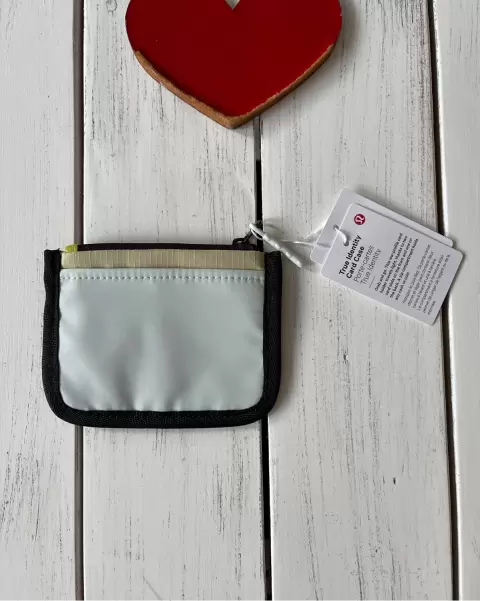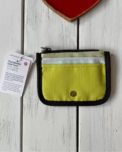Tarjetero deportivo lululemon. Tarjetero de nylon en tonos de verde y uno en azul/gris y negro.Medidas:12 cm de largo y 8.8 cm de alto3 espacios para tarjetas y 1 con cierre para billetes y monedas.Repelente al agua