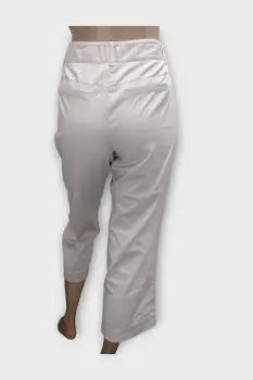 ANN TAYLOR LOFT Pantalón Capri Algodón Beige M 8. ANN TAYLOR LOFT Pantalón Capri Dama Algodón Beige M 8Marca: ANN TAYLOR LOFTOrigen: FilipinasMaterial: 98% Algodón 2% SpandexTalla: M - 8Estilo: ChinosPatrón: CapriColor: BeigeCierre: Cremallera y BotónCintura: 41 cmCadera: 54 cmLargo: 89 cmTiro: 18 cmMuslo: 28 cmEntrepierna: 33 cmRopa de USO en muy buen estadoModelo único Lo que ves es lo que comprasAclara todas tus dudas antes de comprar