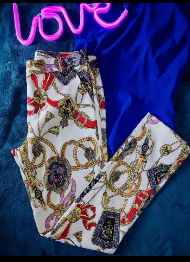 Hermoso pantalón recto, tela fina, estilo buchona, talla chica, estira un poco, pero no mucho, se ve espectalcular, ya no me quedó lamentablemente.Envíos de lunes a sábado.