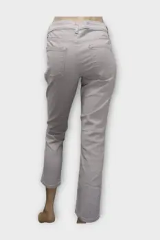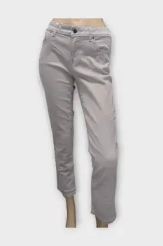 APT 9 Pantalón Straight Capri Dama Algodón Gris M 8Marca: APT. 9Origen: ChinaMaterial: 98% Algodón 2% SpandexTalla: M - 8Estilo: CapriPatrón: StraightColor: Gris ClaroCierre: Cremallera y BotónCintura: 40 cmCadera: 47 cmLargo: 94 cmTiro: 19 cmMuslo: 26 cmEntrepierna: 28 cmRopa de USO en muy buen estadoModelo único Lo que ves es lo que comprasAclara todas tus dudas antes de comprar