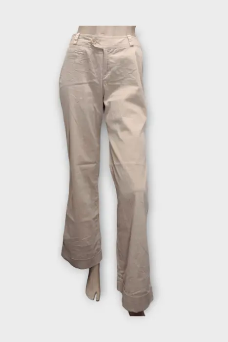 BANANA REPUBLIC Pantalón Algodón Beige XS 4. BANANA REPUBLIC Pantalón Acampanado Dama Algodón Beige XS 4Marca: BANANA REPUBLICOrigen: Hong KongMaterial: 98% Algodón 2% SpandexTalla: XS - 4Estilo: PantalónPatrón: Acampanado StrechColor: BeigeCierre: Cremallera y BotónCintura: 36 cmCadera: 47 cmLargo: 103 cmTiro: 18 cmMuslo: 26 cmEntrepierna: 31 cmRopa de USO en muy buen estadoModelo único Lo que ves es lo que comprasAclara todas tus dudas antes de comprar