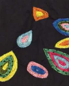 Pantalón recto capri en color azul marino. Estira un poco. Talla 10, está un poco deslavado por el eso; el bordado en perfecto estado.