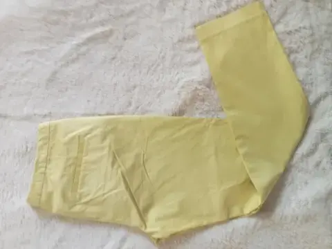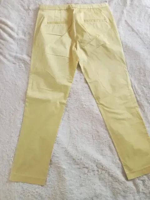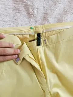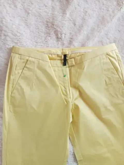 Pantalón Capri Benetton a la altura del tobillo, color amarillo neón. Talla 44 (M) acinturado. 2 bolsillos enfrente.