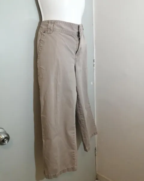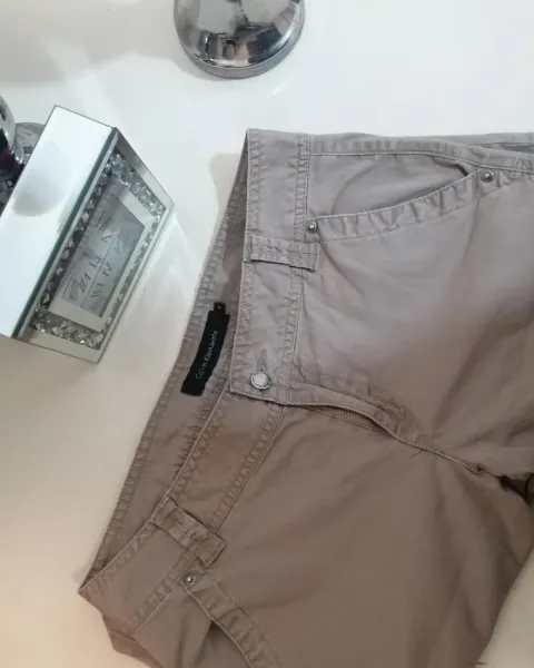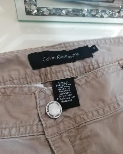 Capri color caqui Calvin Klein talla 8 , con ziper y botón al frente se ajusta perfectamente a tu cuerpo.