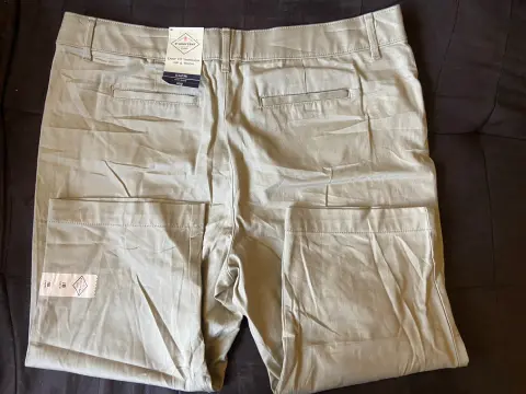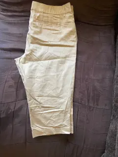 Capri color café muy claro, tela tipo gabardina con cuatro bolsillos, talla 18Medidas: cintura 49cm, cadera 60cm, largo 76cm