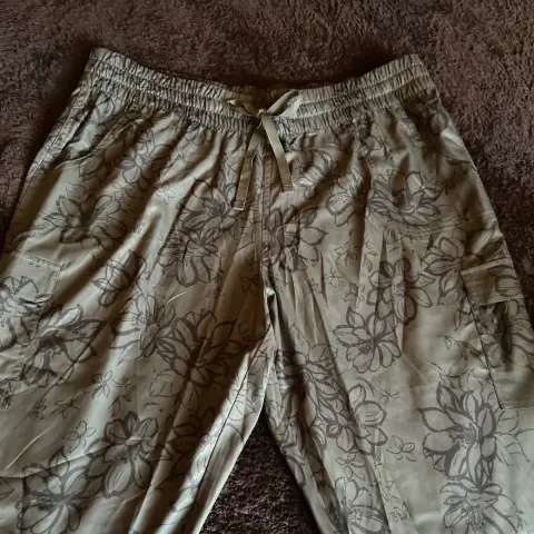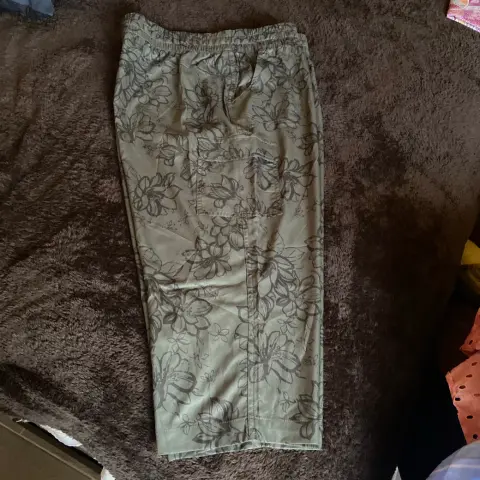 Capri floreado militar. Padrísimo Capri verde miliar, tela delgada con cuatro bolsillos útiles elástico en cintura y jareta para ajustar talla 12