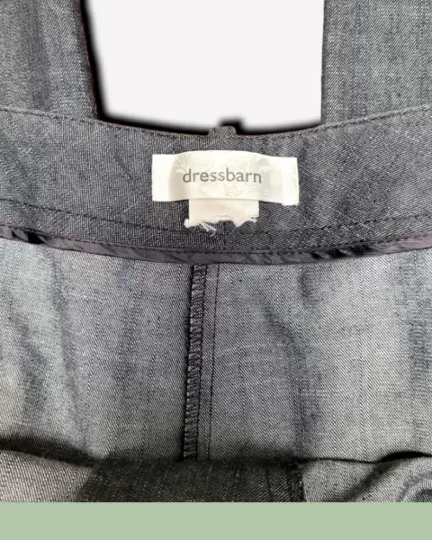 Dress Barn Pantalon Casual o trabajo. Pantalones de oficina para mujer de vestir, talla grande 18, color gris, trabillas, bolsillos delanteros, abertura ancha de la pierna, hechos de poliéster y tela de mezcla de spandex, previamente tejidos como mercancía de cierre de devolución del cliente.