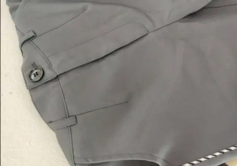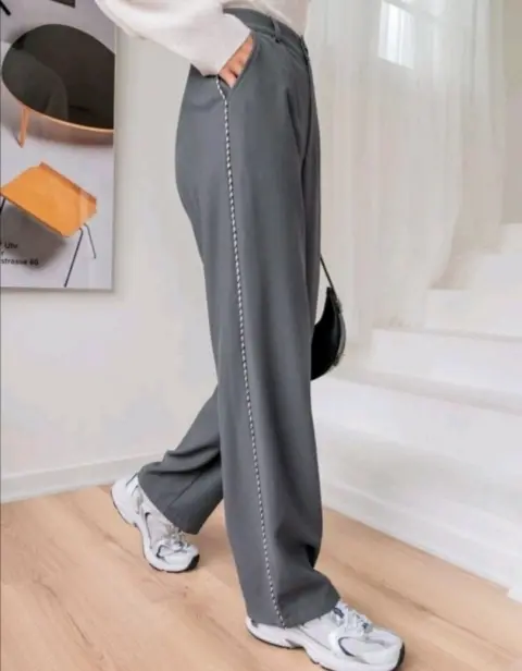 Pantalón de vestir talla L, tiene unas frangas a los costados que lo ase ver moderno, con bolsillos, medidas:Cintura 70-74Cadera 94-98