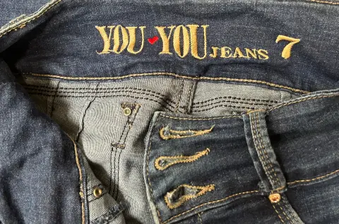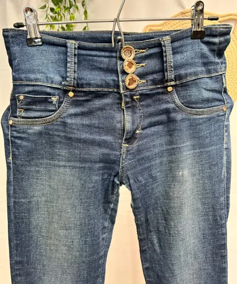Hermoso pantalón LEVANTA POMPAS ☘️🌸. Hermoso pantalón de mezclilla americano, excelente calidad en la tela, stretch, talla 7, ☘️medidas, 84 cintura, 94 caderas, 101 cm de largo. ☘️Le falta una piedrita a un botón.ligera mancha en una pierna.🌸C011🌸🎁Incluye Regalito Sorpresa Gratis 🎁