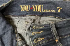 Hermoso pantalón de mezclilla americano, excelente calidad en la tela, stretch, talla 7, ☘️medidas, 84 cintura, 94 caderas, 101 cm de largo. ☘️Le falta una piedrita a un botón.ligera mancha en una pierna.🌸C011🌸🎁Incluye Regalito Sorpresa Gratis 🎁