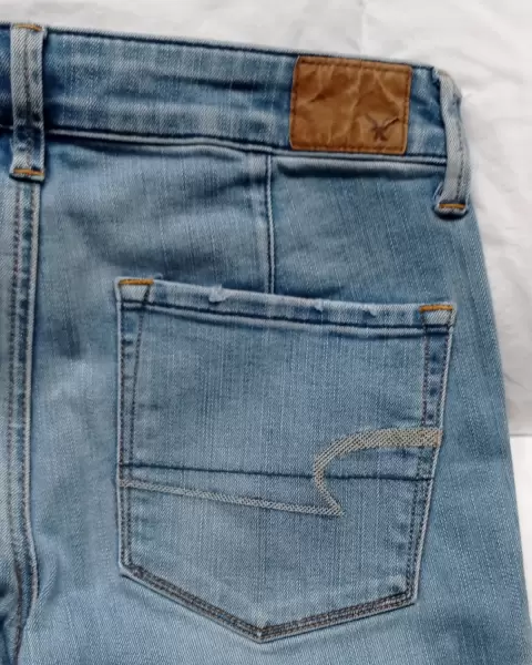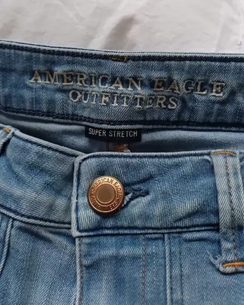 Jeans American Eagle. Pantalón de mezclilla clara. Talla 6, bolsillos al frente y atrás. Corte acampanado. Deshilachado de abajo, en perfecto estado. 71% algodón. Marca American Eagle. Super cómodos y hermosos.
