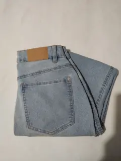 Pantalon de mezclilla vaquero, estilo recto, color azul claro, con el tiro ligeramente elevado. #28 Mex. Esta en perfectas condiciones , solo una puesta, sin ningún detalle.Medias aprox.Cintura 74 cm, Cadera 80 cm, Muslo 84 cm, Pierna 52 cm c/u, Pantorrilla 42 cm c/u, Altura 97 cm.