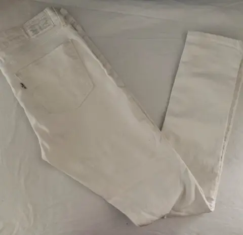 Jeans Skinny blanco Levi's. Es blanquito blanquito, sin detalles ni manchas 😊Marca talla 29 pero viene un poco amplio, considero que una talla más grande.Corte skinny.