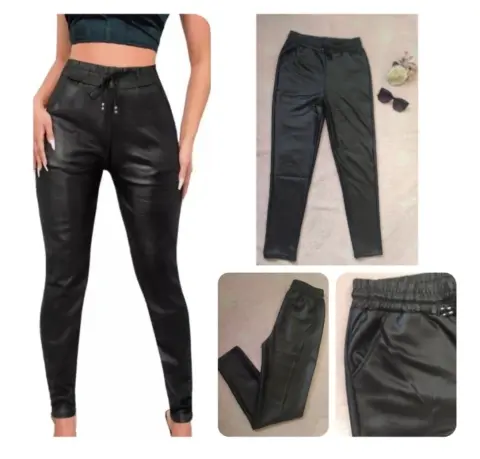 🌷Pantalón Jogger tipo Vinipiel *afelpado por dentro*, calientito, muy cómodo ...resorte en cinturaNegro, strechDa Talla S y M